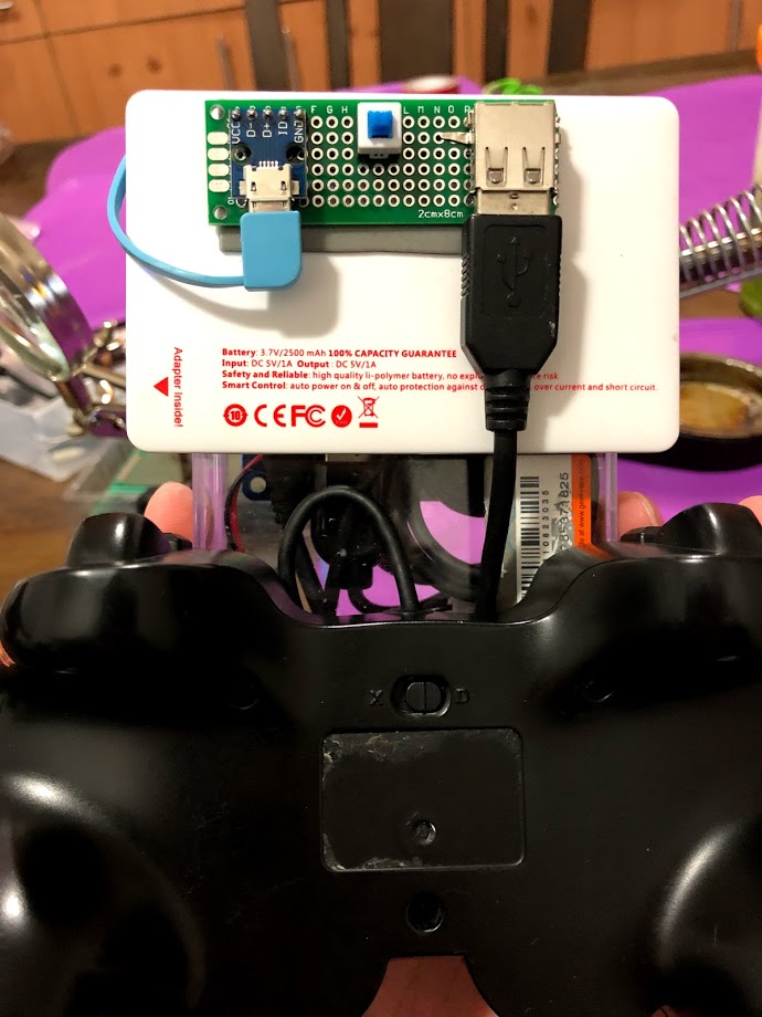 I have been working on finding a better way to power my mobile retro pie for a while now. The only requirements were that it had enough amperage to run it, was easy to recharge, had a small footprint and a power switch. As simple as those requirement were, it was rather difficult to find one out of the box. I had even tried using a lithium ion battery pack paired with an Adafruit power boost 1000c (https://www.adafruit.com/product/2465). This answered the power and charging requirements but I had to custom build a simple power switch for it. The real problem I had with it was that I needed to build/find a case for it and that just made the footprint too big. Turns out the simplest solution is actually the best. I took a small $10 power pack battery that had a small profile and just added the necessary switch and adapters to it. Also very easy to mount given there is a giant flat space on the back of the retro pie.